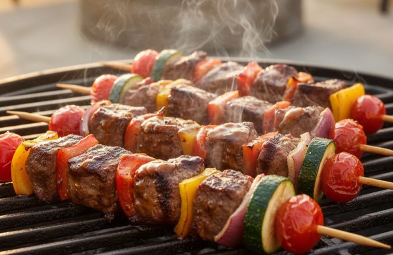 Grill skewers 8-10 min, turning occasionally, until beef is desired doneness